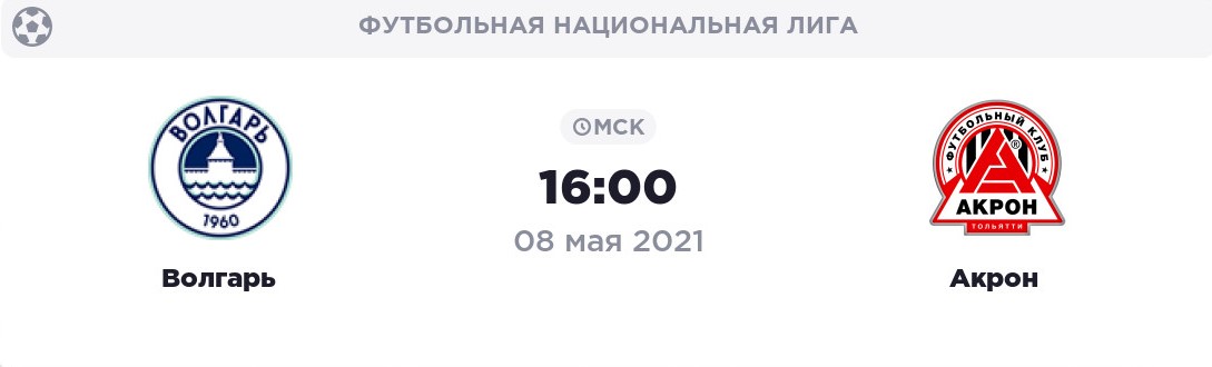 Волгарь - Акрон 08.05.2021 в 16:00